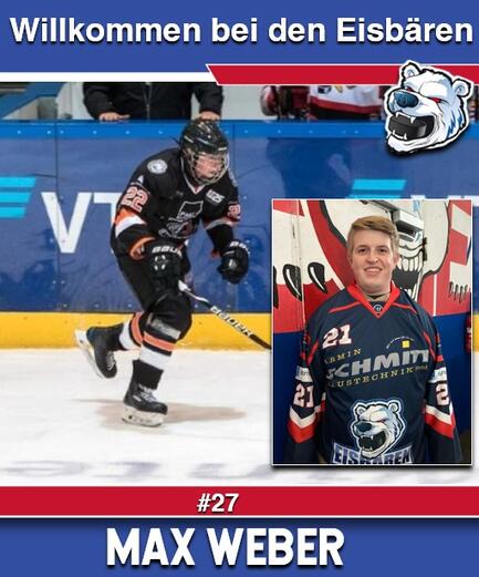 Mit dem Ende der Wechselfrist können die Eisbären einen weiteren Neuzugang in ihren Reihen begrüßen. Von den Frankfurter Löwen (Nachwuchs) wechselt der 20-jährige Max Weber zu den Eisbären. Für den gebürtigen Hessen wird der ECE, die erste Station außerhalb Frankfurts sein, da er bislang lediglich per Förderlizenz in Kassel und bei der Hessenauswahl nicht in den Farben der Löwen aufgelaufen ist.