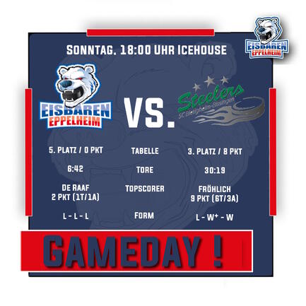 Mit den Steelers empfangen die Eisbären den vierten Gruppengegner im Icehouse, ehe man zwiemal auswärts antreten muss. Die Eisbären stehen nach 5 Niederlagen auf dem letzten Platz, während die Steelers auf Rang 3 rangieren. Auch wenn die Trauben erneut hoch hängen hat man nach der höchsten Saison-Niederlage in Bietigheim noch eine Rechnung offen, sich im Rückspiel teurer zu verkaufen.