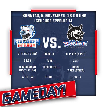 Nach einer knappen Niederlage (2:5) zum Auftakt gegen die ambitionierten 1b-Rebels aus Stuttgart konnte man sich im zweiten Spiel durch den 14:2 - Erfolg über Heilbronn rehabilitieren und Selbstvertrauen für die kommenden Aufgaben holen. Und auch die direkte Bilanz der Wölfe gegen die Eisbären spricht für ein enges Duelle, der letzte Sieg der Eisbären gegen Freiburg stammt aus dem Jahre 2018, als man 71 Sekunden vor dem Ende den 4:3 - Siegtreffer erzielen konnte.